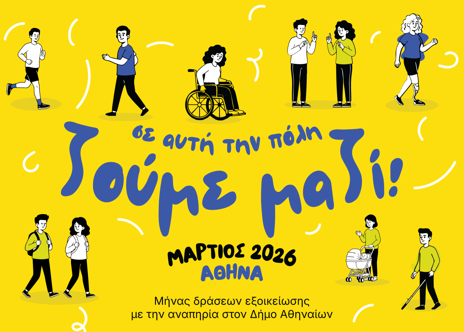Ο Δήμος Αθηναίων έχει ορίσει τον Μάρτιο ως «Μήνα Δράσεων Εξοικείωσης με την Αναπηρία» και όπως κάθε χρόνο, έτσι και φέτος, προσκαλεί κατοίκους και επισκέπτες της πόλης σε μια πολυδιάστατη εμπειρία συμπερίληψης. Μέσα από σειρά πρωτοβουλιών που καταρρίπτουν τα εμπόδια στην κίνηση και την επικοινωνία, η Αθήνα μεταμορφώνεται σε μια πόλη που μας χωράει όλους.